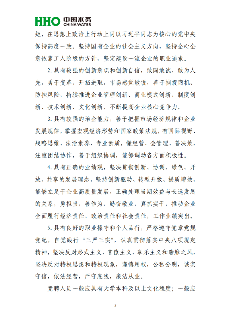 關(guān)于開展齊水集團總經(jīng)理崗位競聘的公告