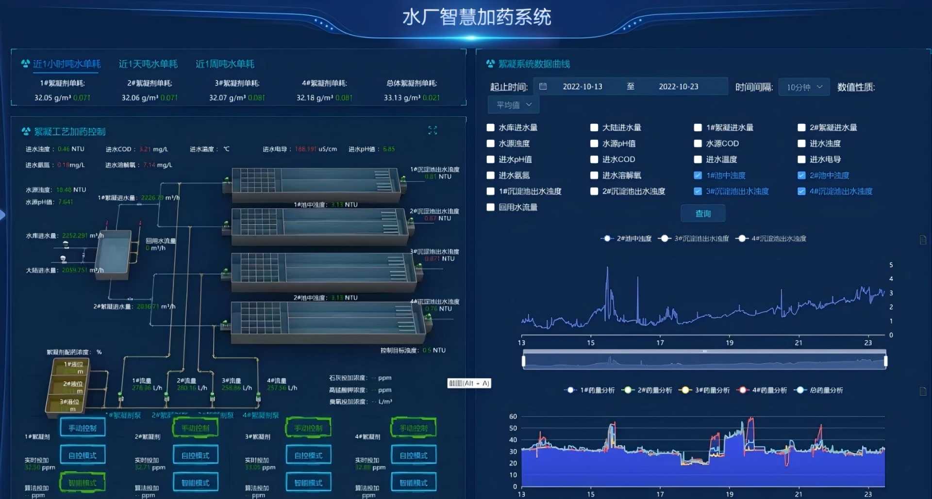 系統(tǒng)采用了AI人工智能技術(shù),綜合考慮污水廠生產(chǎn)過程中所面臨的諸多因素,憑借大數(shù)據(jù)分析和算法不斷自我學(xué)習(xí),從而實(shí)現(xiàn)對(duì)各參數(shù)的實(shí)時(shí)計(jì)算與藥劑投加量的同步調(diào)整,不僅保障了污水處理廠出水總磷穩(wěn)定達(dá)標(biāo),還可降低藥劑消耗。