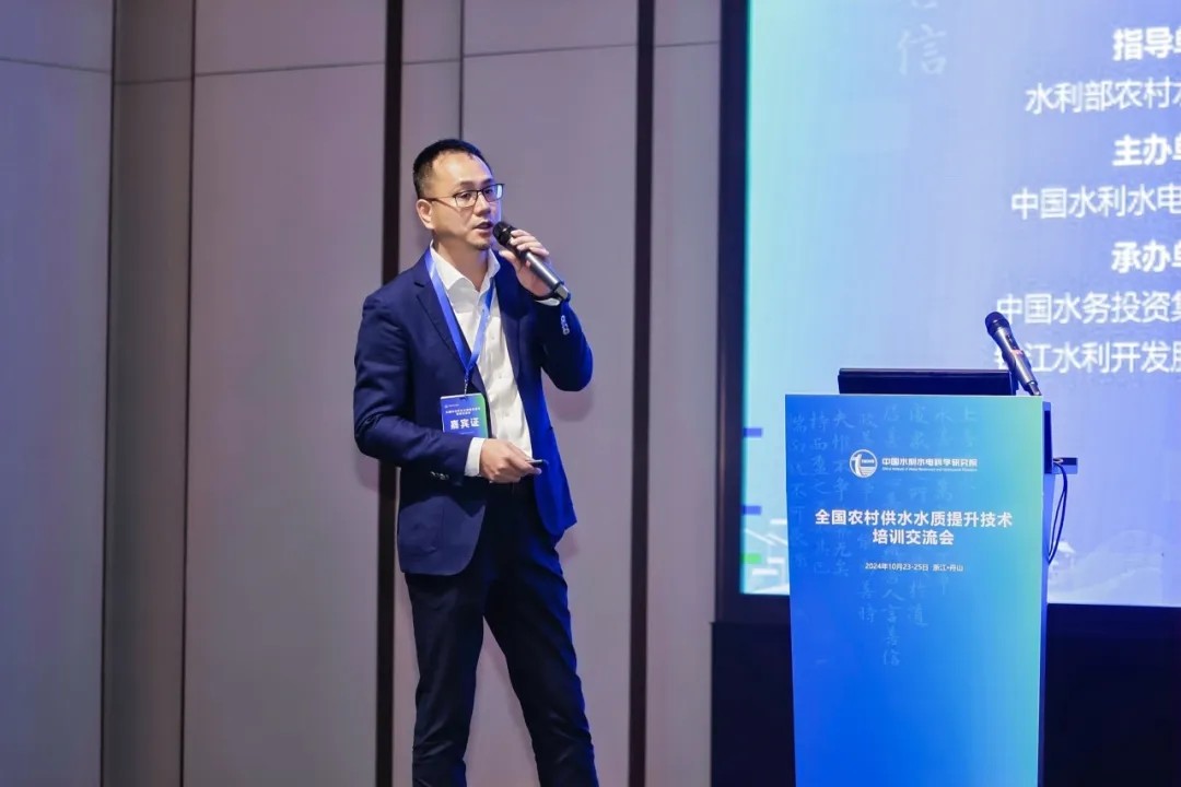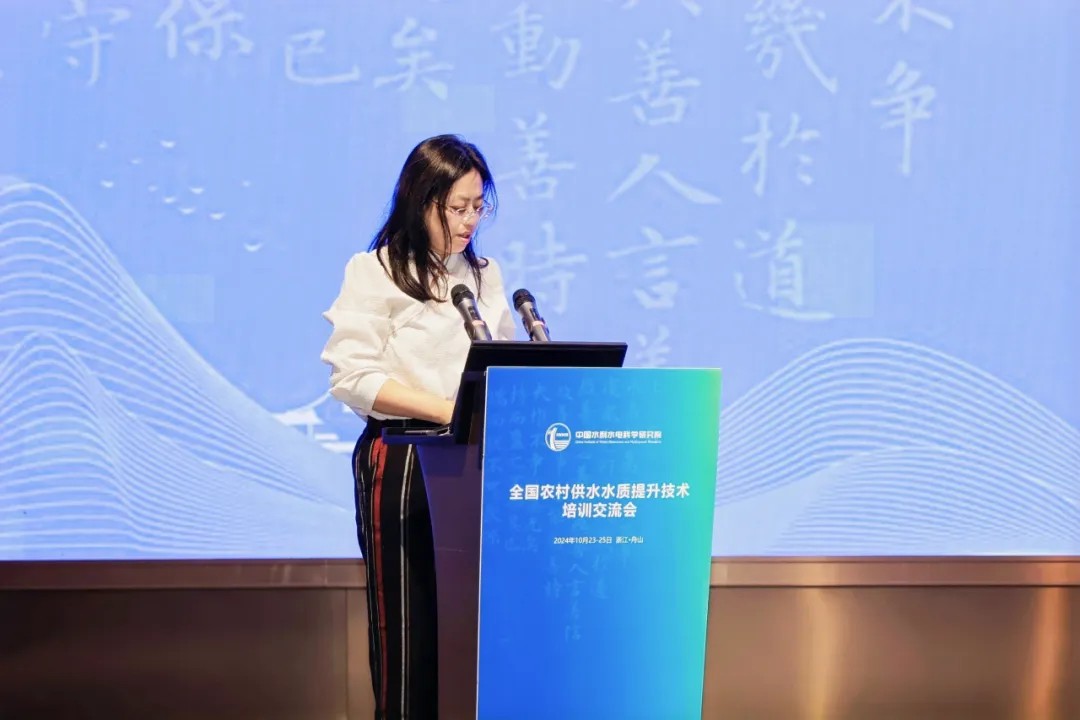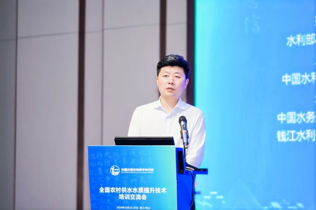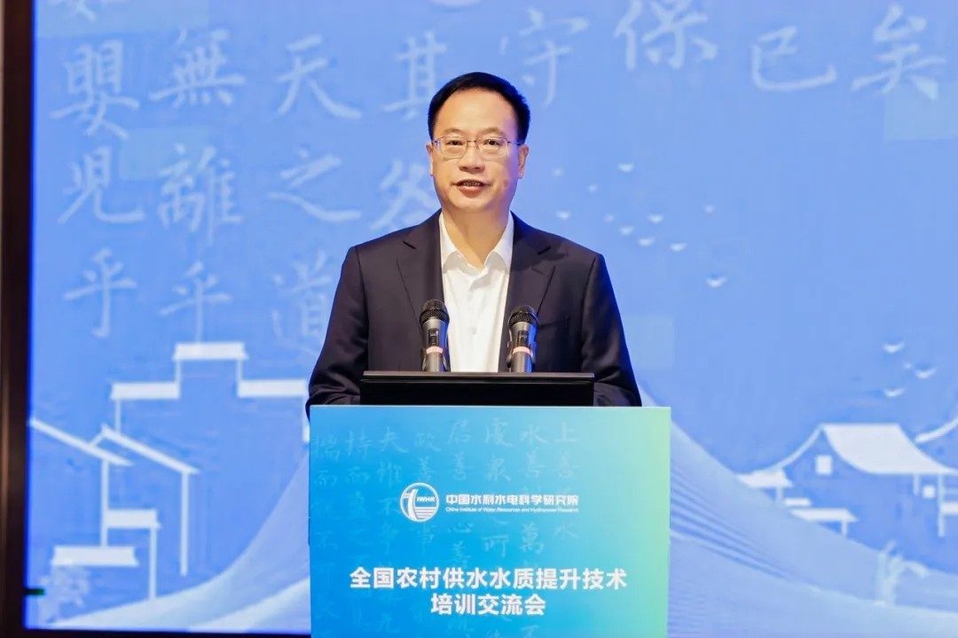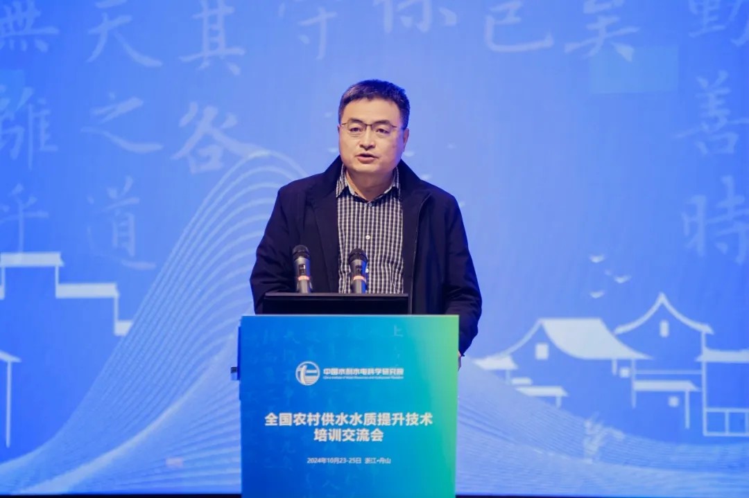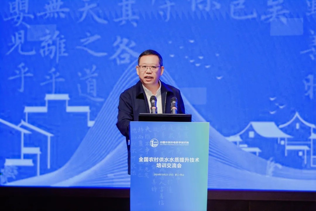 中國水利水電科學研究院副院長丁留謙致開幕辭。他全面分析了農(nóng)村供水要點及難點,指出要充分利用此次會議平臺,暢所欲言、相互啟迪、凝聚共識,通過技術(shù)培訓與交流推動行業(yè)供水水質(zhì)管理水平和實踐應(yīng)用能力穩(wěn)步提升,共同為推動農(nóng)村供水水質(zhì)提升、農(nóng)村供水高質(zhì)量發(fā)展貢獻力量。