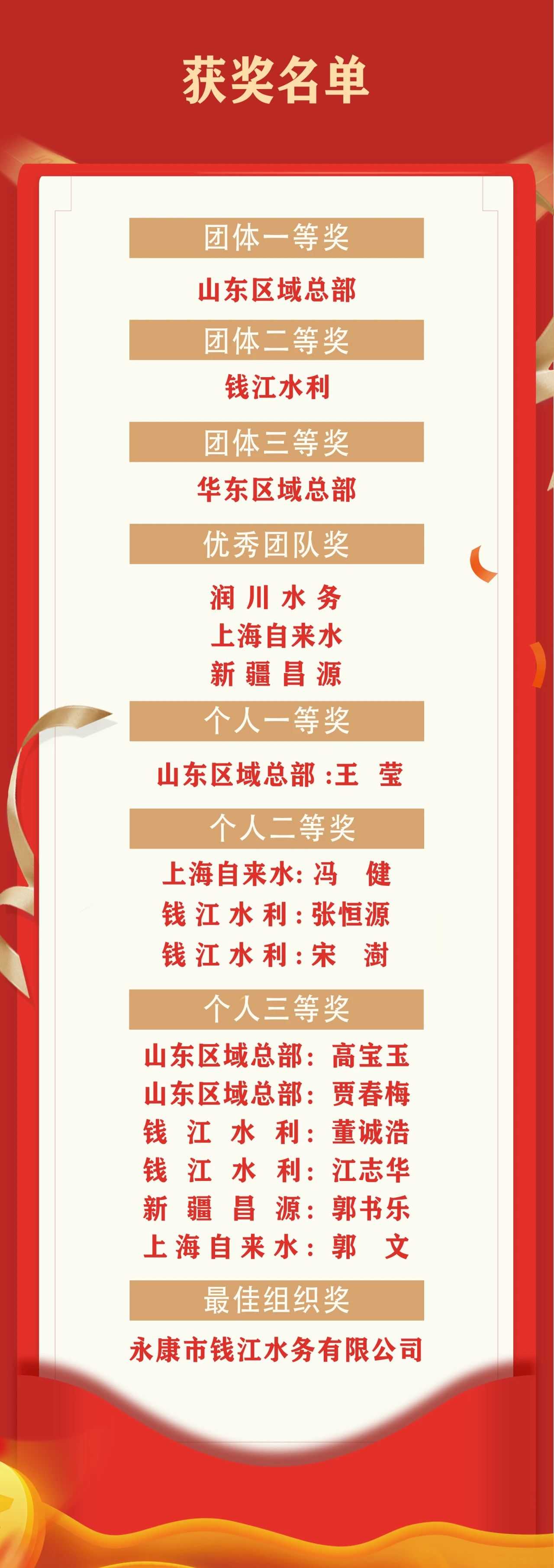水利部綜合事業(yè)局工會(huì)主席劉振生,永康市水務(wù)局黨委書(shū)記、局長(zhǎng)朱志豪,公司副總經(jīng)理李先明出席決賽現(xiàn)場(chǎng)。經(jīng)過(guò)初賽階段6992名員工參與線(xiàn)上答題的激烈角逐,共有6支參賽隊(duì)伍進(jìn)入決賽。