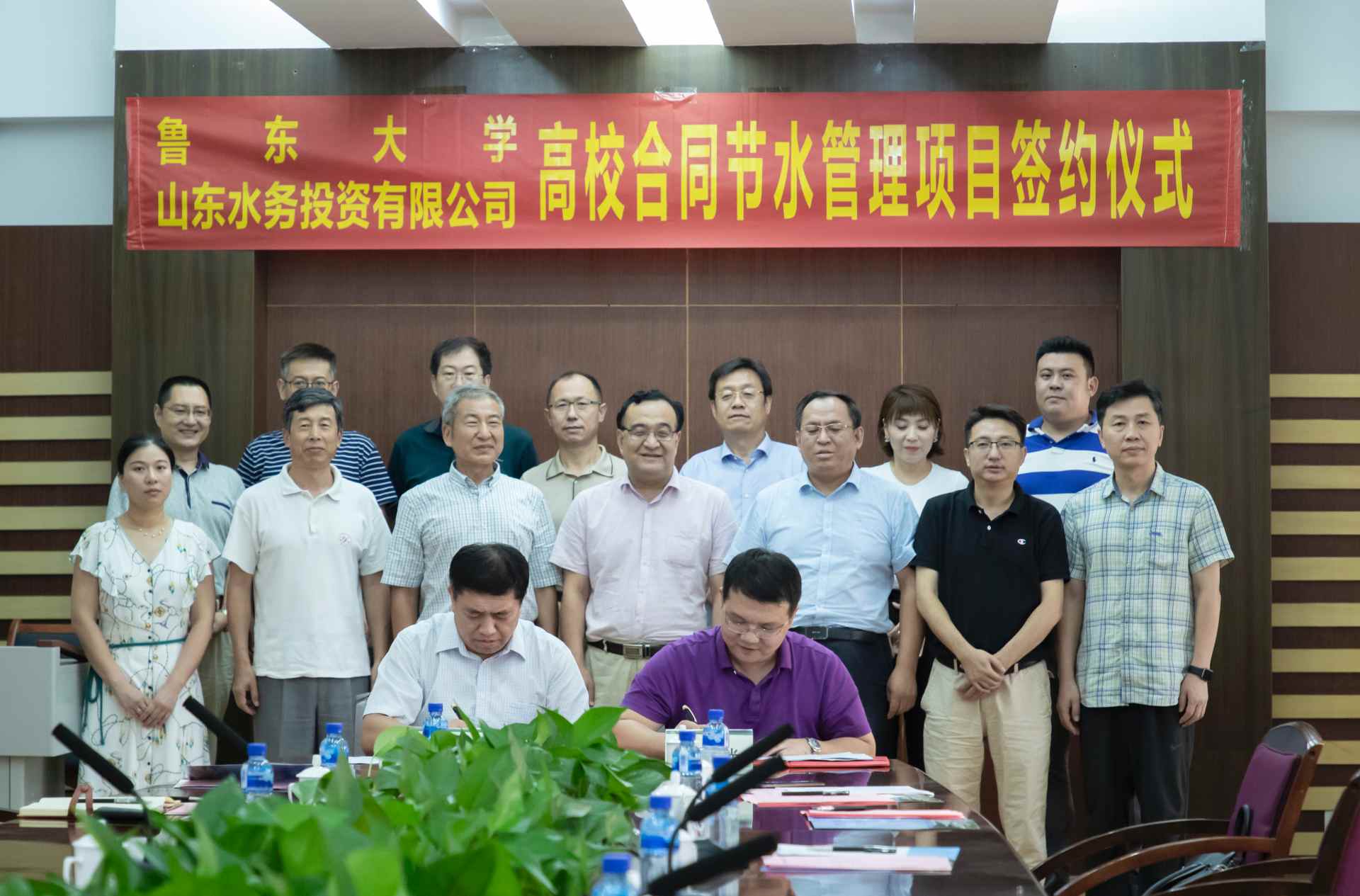 2019年8月9日,山東水務(wù)投資有限公司與魯東大學(xué)高校合同節(jié)水管理項(xiàng)目簽約儀式在煙臺(tái)舉行。山東省水利廳總規(guī)劃師姜延國(guó)、節(jié)約用水辦公室副主任袁峰,魯東大學(xué)黨委常委、副校長(zhǎng)沈東,煙臺(tái)市水利局黨組成員、河長(zhǎng)制服務(wù)中心主任李秀強(qiáng),山東水務(wù)投資有限公司副總經(jīng)理周生光,北京中水新華灌排技術(shù)有限公司副總經(jīng)理?xiàng)钛育埖瘸鱿灱s儀式。