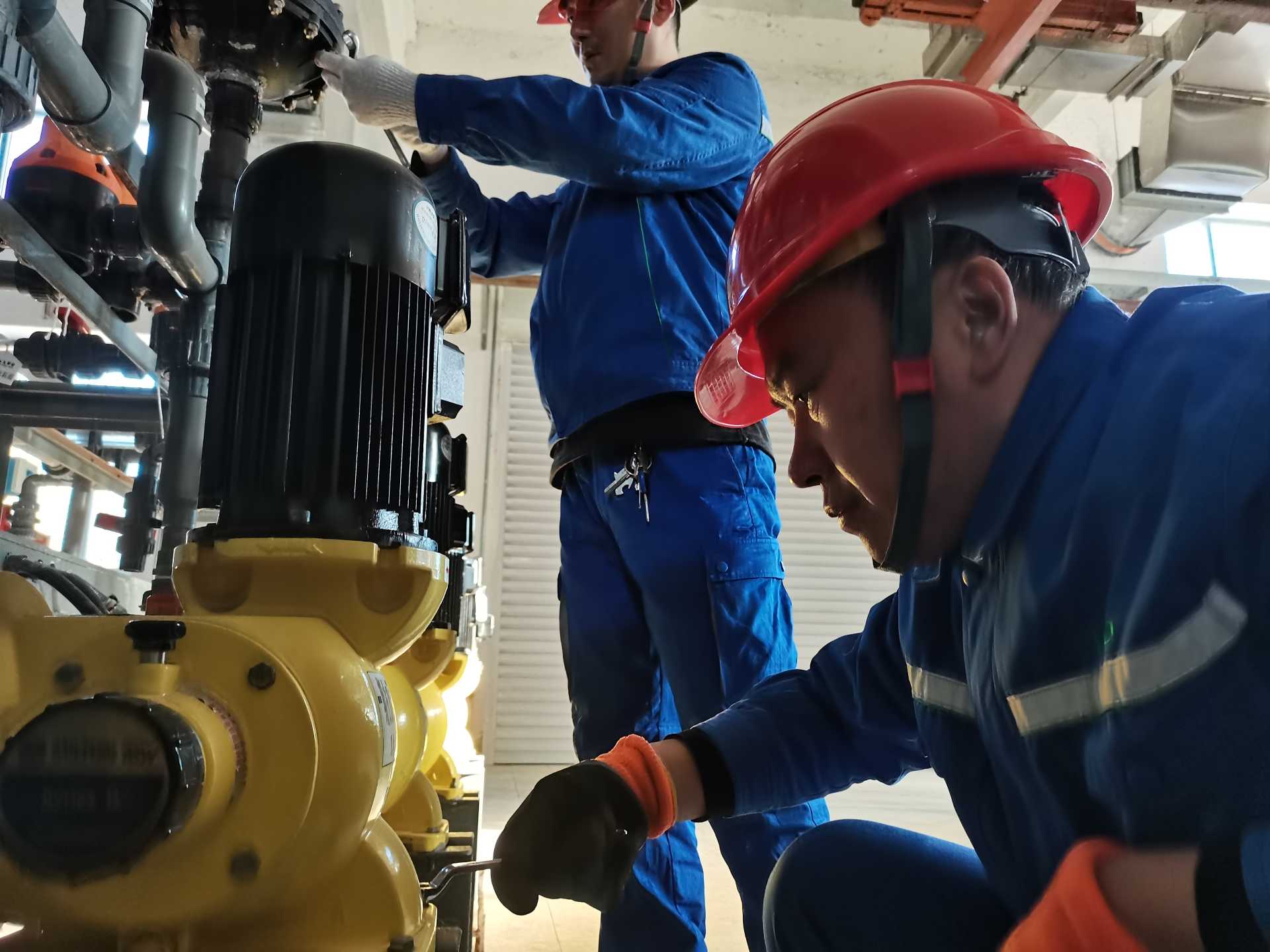 泵房內(nèi),機聲隆隆。設(shè)備維修工梁洪濤和兩名同事正在巡檢各個壓泵、水泵,進(jìn)行維護(hù)保養(yǎng),確保水廠重點設(shè)施和關(guān)鍵設(shè)備平穩(wěn)運行。水廠值班全年均為24小時不間斷,并不區(qū)分工作日和節(jié)假日。記者在體驗巡檢工作時看到,所有工作人員都以飽滿的精神狀態(tài),堅守在各自崗位上。