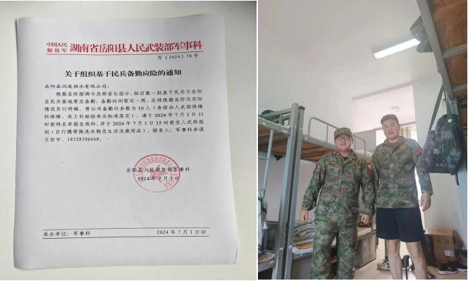 ?汛情越來越嚴(yán)竣,7月1日,岳陽公司劉澤華、彭煜翔兩名同志應(yīng)岳陽縣人民武裝部函件積極參加基層民兵備勤應(yīng)險(xiǎn),為了守護(hù)一方平安,他們義無反顧,和人民軍隊(duì)沖鋒在最危險(xiǎn)的抗洪搶險(xiǎn)第一線。