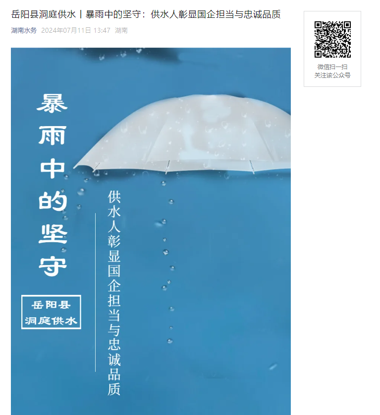 7月11日,《湖南水務(wù)報(bào)》官微報(bào)道中國水務(wù)華中區(qū)域總部所屬岳陽洞庭供水有限公司與人民軍隊(duì)并肩抗洪保供水紀(jì)實(shí)。