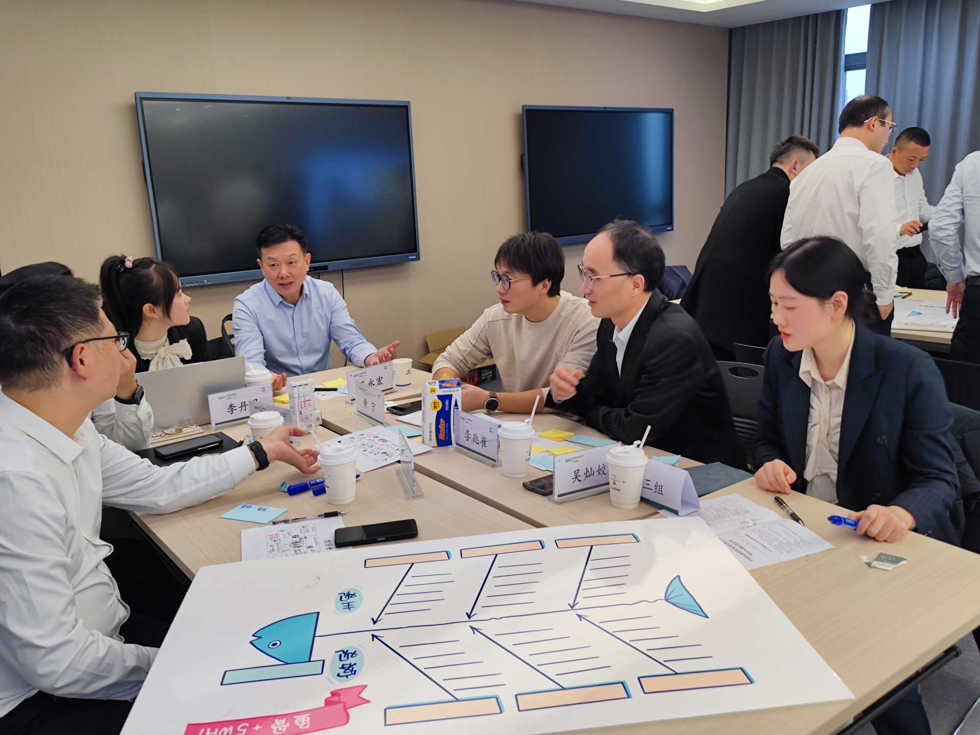 活動中,四組學員圍繞“如何在業(yè)務開拓時期發(fā)揮宣傳工作的作用”以及“如何將科技研發(fā)成果轉化為業(yè)務發(fā)展推動力”兩個主題展開深入討論?,F(xiàn)場氣氛熱烈,學員們積極參與,通過頭腦風暴、團隊列名、5why+魚骨圖分析法等多種研討工具,進行了充分的交流和思考,尋找解決辦法,發(fā)揮了團隊的智慧和力量。經(jīng)過熱烈的討論,學員們不僅消除了陌生感,建立了良好的團隊協(xié)作關系,還對主題有了更深入的理解,找出了根本原因,并提出了一系列切實可行的解決辦法,涵蓋了宣傳策略、科技研發(fā)與業(yè)務融合等多個方面,為華中區(qū)域總部的發(fā)展提供了有益的參考。