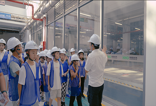 活動(dòng)開(kāi)始,學(xué)生們?cè)诮邮苋霃S(chǎng)安全宣講后,來(lái)到研學(xué)課堂。講解員通過(guò)動(dòng)畫(huà)短片展示了污水從收集、處理到達(dá)標(biāo)排放或回用的完整流程,并結(jié)合模擬實(shí)驗(yàn),講解了污水處理的核心原理、工藝特點(diǎn)及其在保護(hù)水體和生態(tài)環(huán)境中的關(guān)鍵作用。