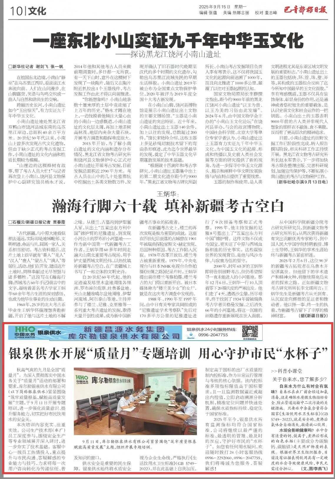9月15日,新疆巴音郭楞蒙古自治州《巴音郭楞日?qǐng)?bào)》在文化板塊刊發(fā)報(bào)道,聚焦昌源集團(tuán)庫爾勒銀泉供水公司(以下簡(jiǎn)稱 “銀泉供水公司”)開展的“質(zhì)量月”專題培訓(xùn)活動(dòng),生動(dòng)展現(xiàn)了銀泉供水公司在筑牢水質(zhì)安全根基、服務(wù)城市供水保障中的扎實(shí)舉措與責(zé)任擔(dān)當(dāng)。