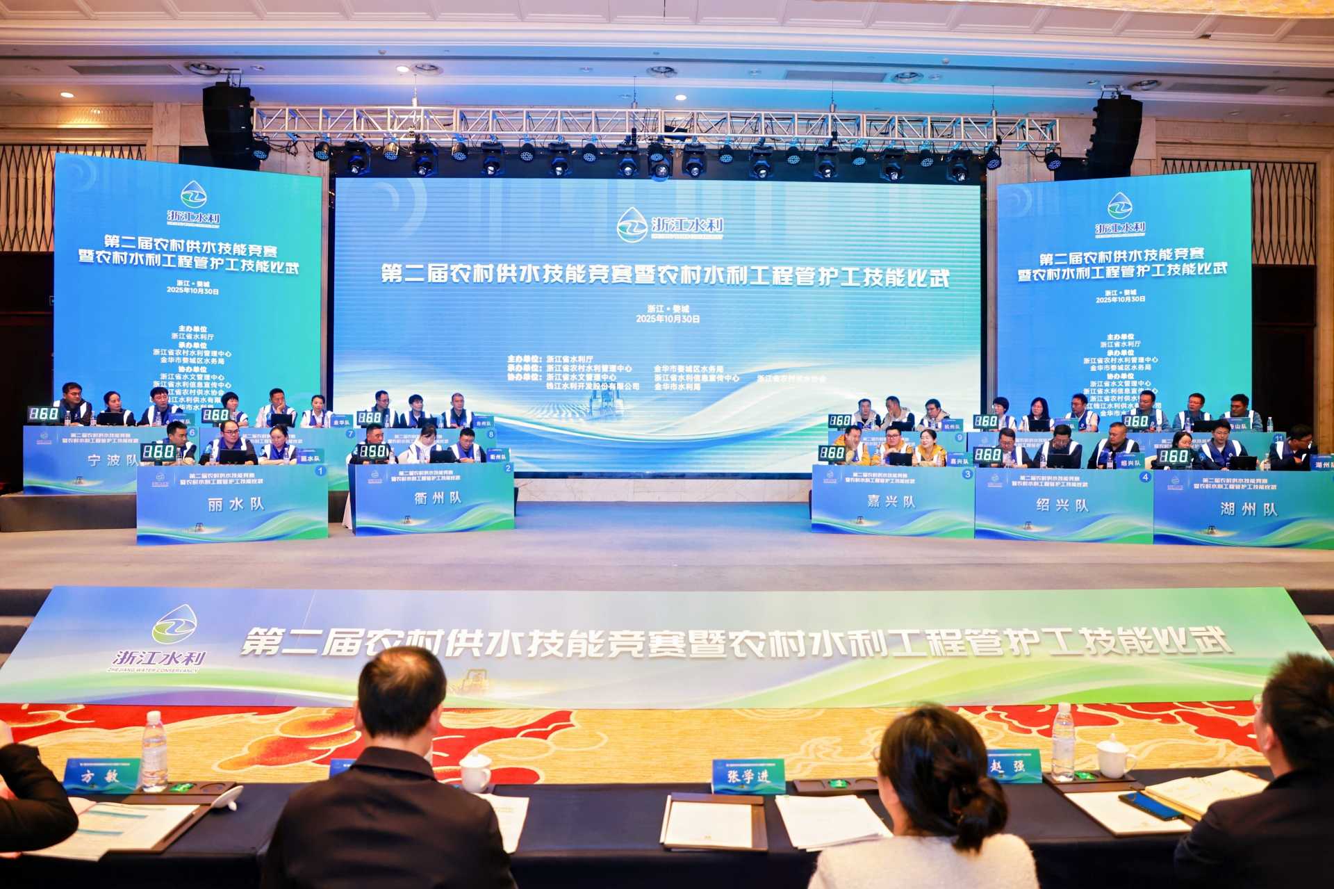 10月30日,由浙江省水利廳主辦的“浙江省第二屆農(nóng)村供水技能競賽暨農(nóng)村水利工程管護工技能比武”圓滿落幕!這是在錢江水利農(nóng)村供水技術(shù)研發(fā)試驗基地舉行的一場“水務精英對決”。來自全省11個地市的農(nóng)村供水技能精英齊聚基地,同臺競技、切磋技藝,共同守護農(nóng)村供水“生命線”。水利部農(nóng)村水利水電司二級巡視員張學進,浙江省水利廳黨組成員、副廳長朱留沙,省農(nóng)村水利管理中心主任方敏、廳人事處副處長趙強等領(lǐng)導出席并現(xiàn)場觀摩比賽。