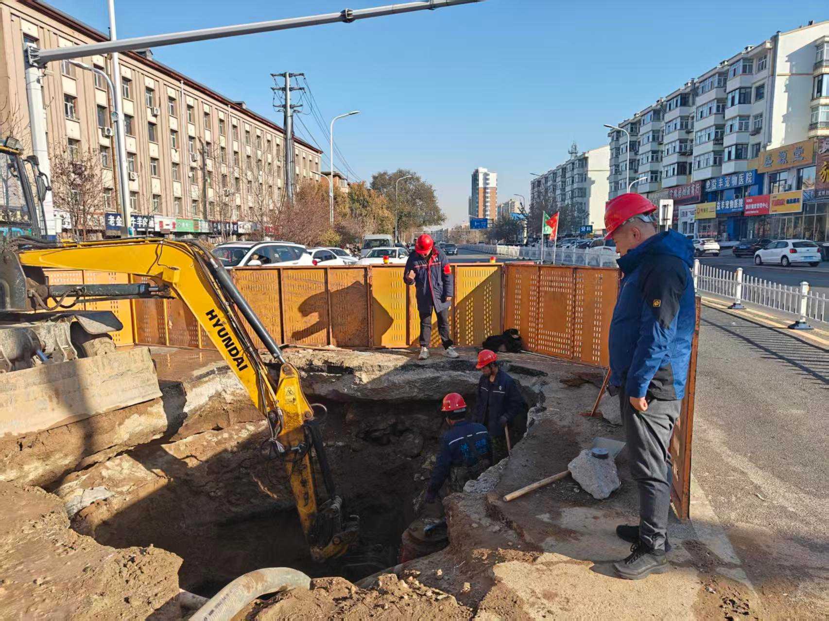 11月3日6時(shí),齊水集團(tuán)管線巡查人員發(fā)現(xiàn)卜奎北大街一段服役50年的DN400供水主管線發(fā)生泄漏,隨即按程序進(jìn)行上報(bào),公司立即組織開展了應(yīng)急搶修。該管線是城區(qū)供水重要樞紐,承擔(dān)著多個(gè)居民區(qū)的供水任務(wù)。面對(duì)地下管線復(fù)雜、水泥套管阻礙、空間狹小等困難,搶修團(tuán)隊(duì)采用“非開挖式內(nèi)襯修復(fù)”工藝,人工拆除套管,最大限度減少對(duì)交通和環(huán)境的影響。