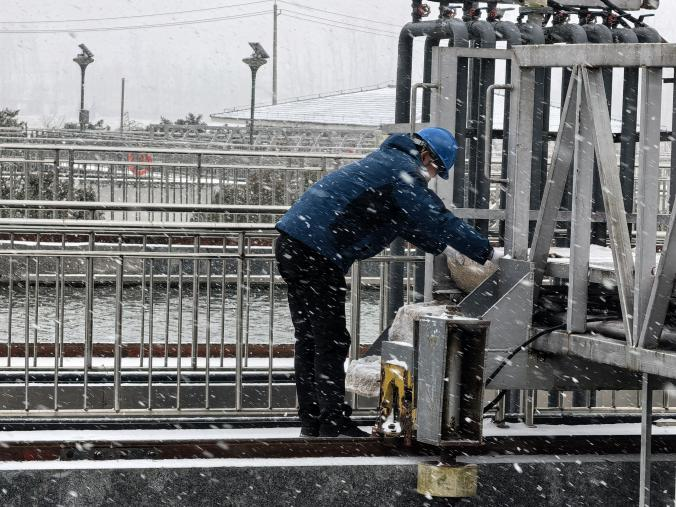 邳州水務的運行人員在風雪中按計劃執(zhí)行巡檢維護任務,有序開展吸泥機轉軸除冰與軌道清雪作業(yè),用扎實的日常維護,守護著水廠生產流程的平穩(wěn)脈搏。