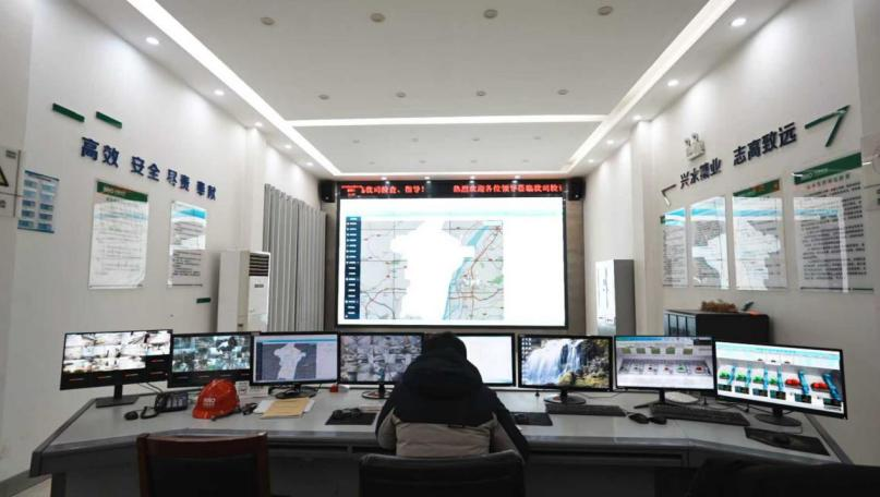 調度中心內,和縣華水水務值班人員正緊盯屏幕上實時變化的管網壓力與流量數據,嚴密監(jiān)控寒潮下的供水運行狀態(tài),確保響應指令精準直達一線。