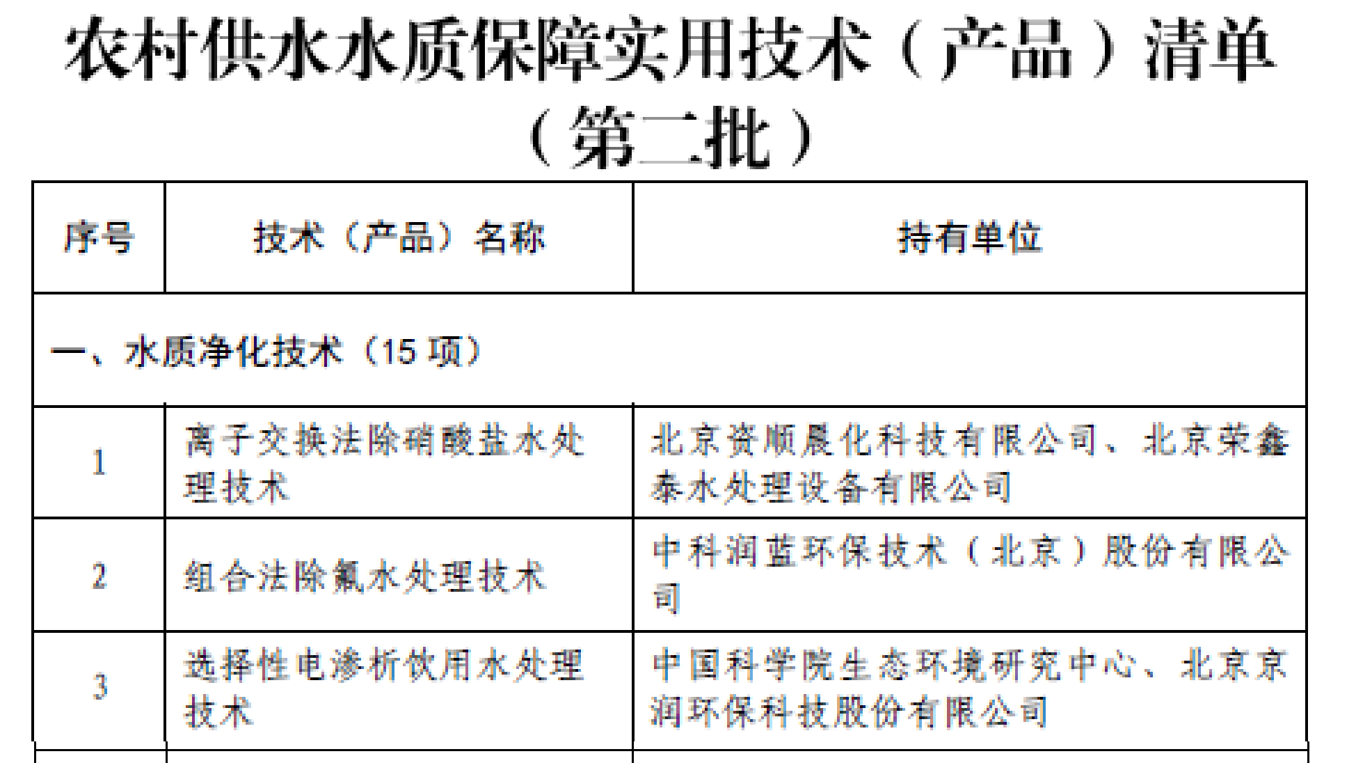 中國(guó)水務(wù)兩項(xiàng)供水關(guān)鍵技術(shù)入選國(guó)家推廣目錄