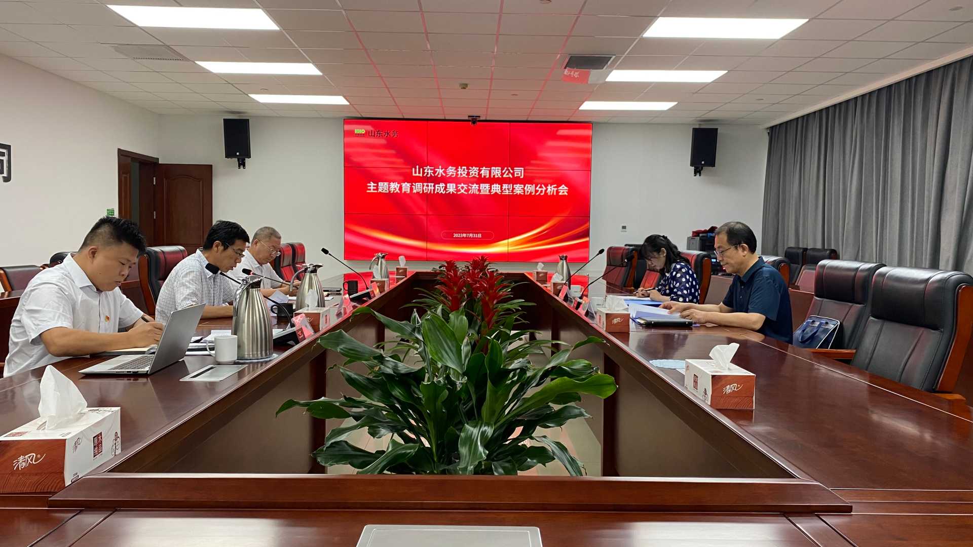 7月31日,山東水務黨委組織召開學習貫徹習近平新時代中國特色社會主義思想主題教育調研成果交流暨典型案例分析會。公司領導班子成員集體對調查研究的成果與經驗進行交流,通過正、反面典型案例進行分析,研究改進措施,解決關鍵問題,助推公司高質量發(fā)展。省水利廳主題教育指導推進組馬成副組長,李秋香主任到會指導。