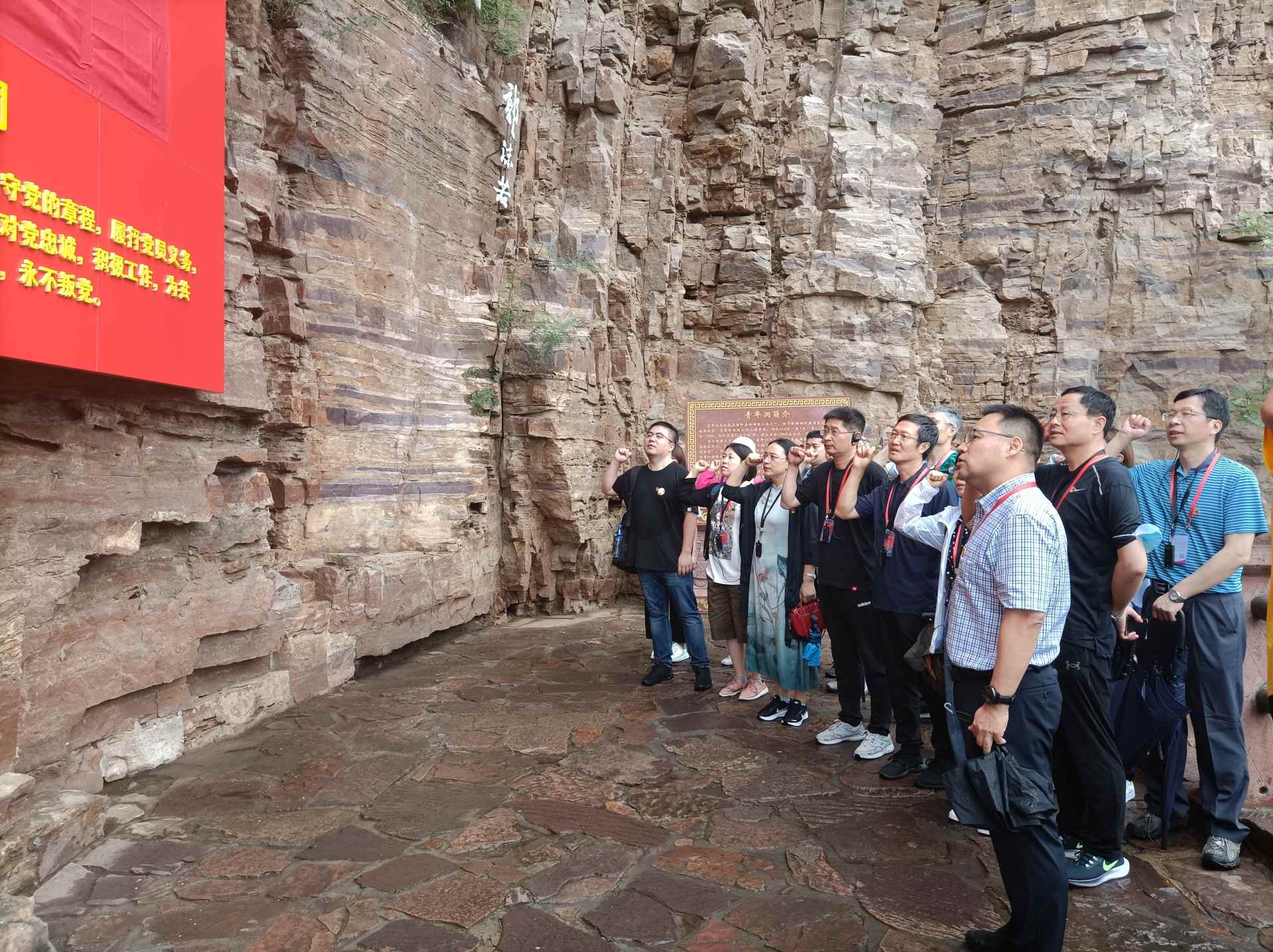 一渠繞群山,精神動天下。習(xí)總書記指出:“紅旗渠精神是我們黨的性質(zhì)和宗旨的集中體現(xiàn)、歷久彌新,永遠(yuǎn)不會過時?!秉h日活動從紅旗渠紀(jì)念館開始,2000多件珍貴實物、圖片和文字資料,立體重現(xiàn)了當(dāng)年十萬大軍戰(zhàn)太行的震撼場景。大家走到紅旗渠分水樞紐工程—分水閘,感受到“太行天路、天路堡壘”,雨中的紅旗渠雄險奇秀,那些劈山鑿洞、戰(zhàn)斗天地的歷史痕跡,顯得山河更加壯美。全體黨員在總干渠青年洞莊嚴(yán)重溫入黨誓詞。大家在谷文昌生平事跡展了解了“四有書記”的光輝楷模和不朽一生,在扁擔(dān)精神紀(jì)念館感受到“艱苦創(chuàng)業(yè)、勤儉辦社、一心為民、開拓創(chuàng)新”的扁擔(dān)精神。在返程的路上,大家專程參觀了八路軍一二九師部舊址,瞻仰了左權(quán)將軍墓。